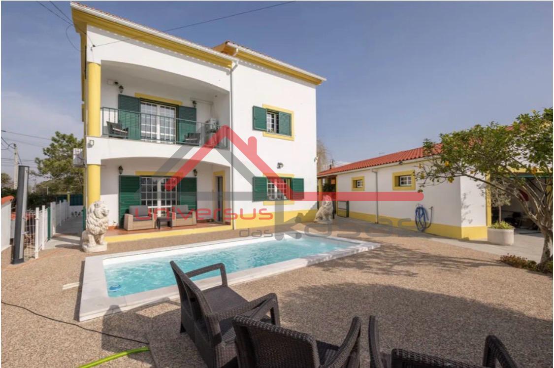 Apresento esta excelente moradia T5+3 com 217 m2 de area util, inserida num lote de terreno 649 m2, com piscina a entrada do Pinhal Novo COMPLETAMENTE MOBILADA.